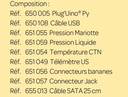 - Coffret 6 modules : Réf. 652 112 : pression (Mariotte), pression (liquide), température CTN, télémètre US, connecteur Jack, connecteur 2 bananes femelles, câble SATA.